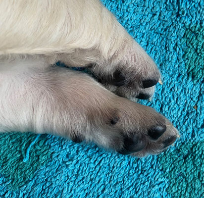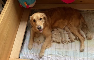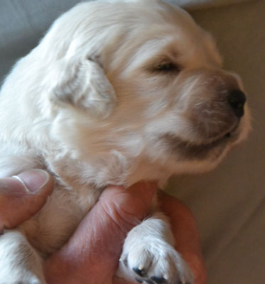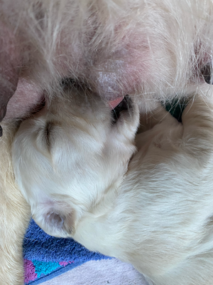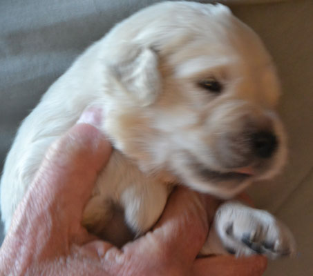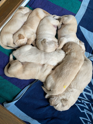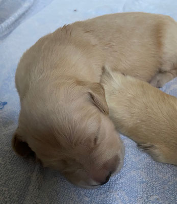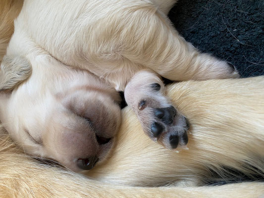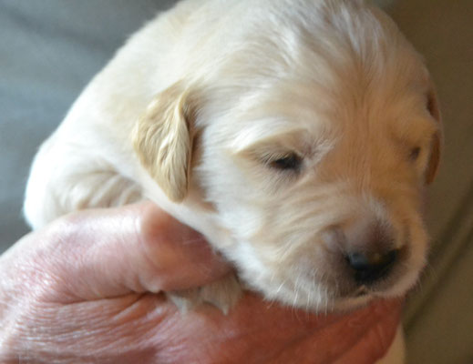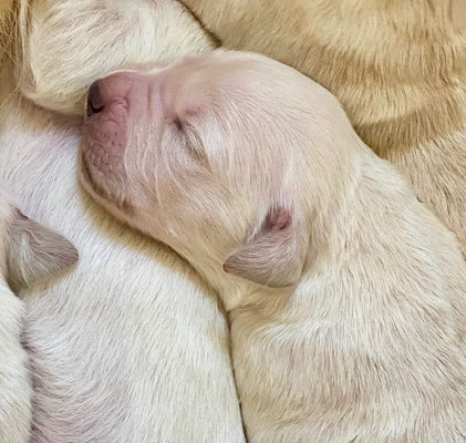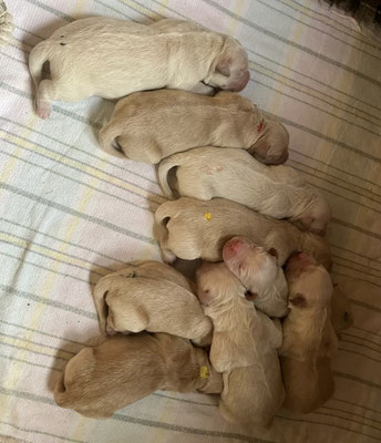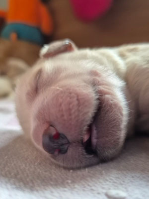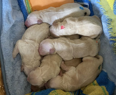 Leider hat es eines der Mädchen nicht geschafft und ist nach 3 Tagen gestorben. Den anderen 8 Welpen und Shari geht es sehr gut und die Welpen legen auch täglich ordentlich an Gewicht zu.