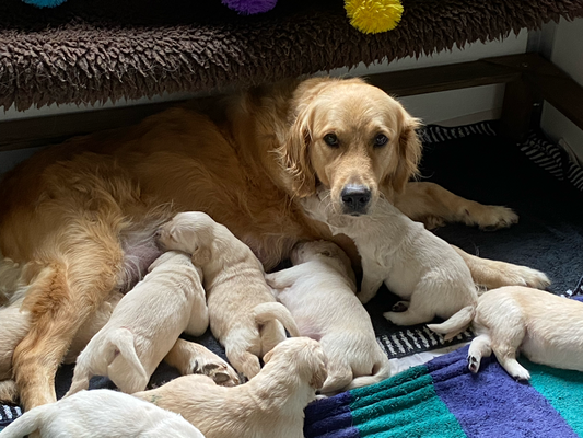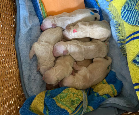 Am 05. August hat Shari innerhalb von knapp 6 Stunden völlig komplikationslos 9 Welpen zur Welt gebracht - 7 Rüden und 2 Hündinnen.