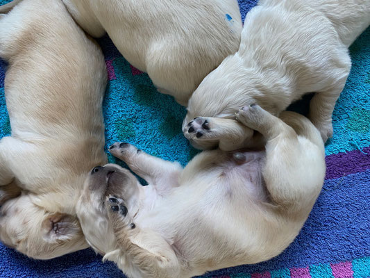 3 Wochen ist die „Bande“ jetzt schon alt. Die Ersten haben die 2000 Gramm-Marke überschritten und alle haben die erste Wurmkur gut vertragen.